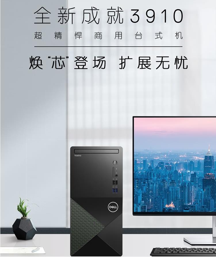 戴爾(DELL) Vostro成就3910-14N9十二代酷睿內(nèi)置WIFI辦公設(shè)計(jì)臺式電腦主機(jī)i5-12400 8G 256G+1T加21.5英寸顯示器