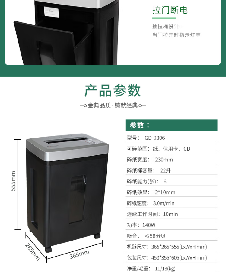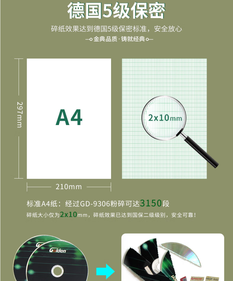 金典 GOLDEN GD-9306 碎紙機 商務(wù)粉碎機