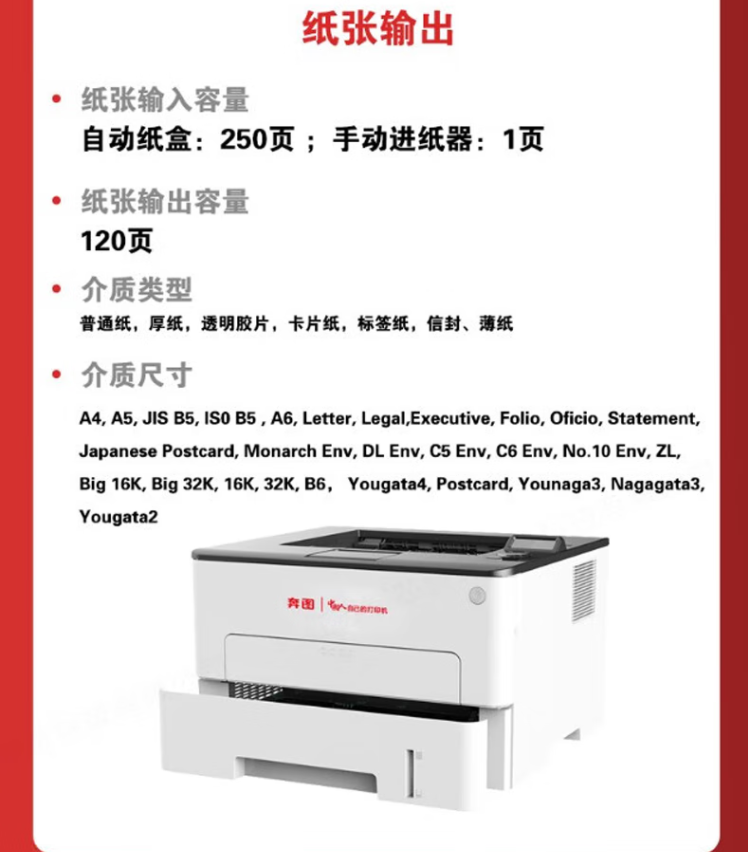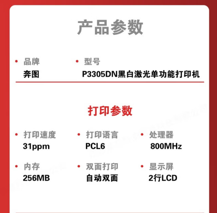 參數 [品牌] 奔圖 [型號] P3305DN [毛重] 7.5KG