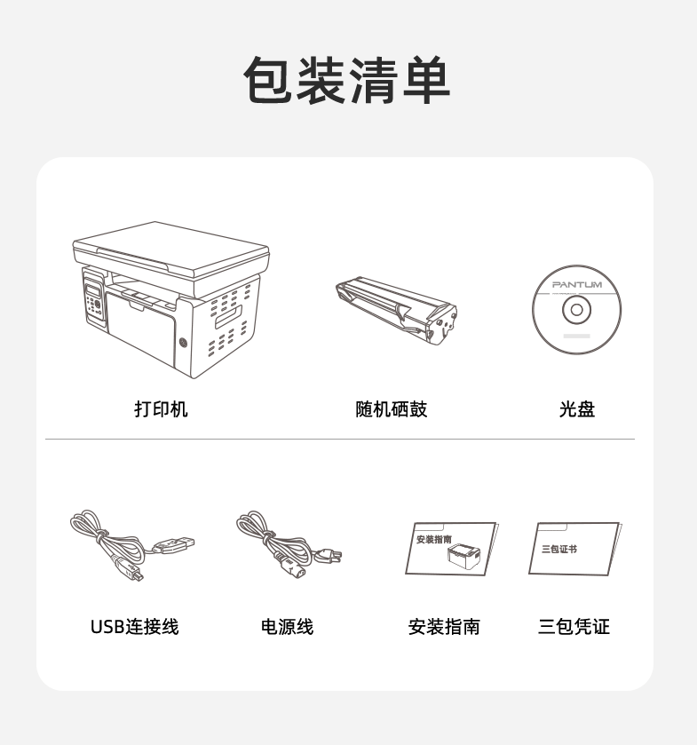 參數(shù) [品牌] 奔圖 [型號] M6202NW [毛重] 11.5KG